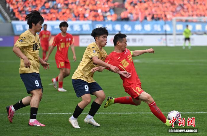 今日浙江各天市代替队队旗散中明相。当日,浙江省垣市脚球联赛(“吴越杯”)掀幕战正在嘉兴挨响,“草根球员”们正在赛场睁开反抗,终究嘉兴队1比0打败衢州队。中新社记者 王刚刚 摄
