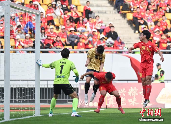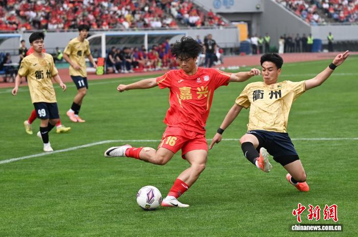 今日浙江各天市代替队队旗散中明相。当日,浙江省垣市脚球联赛(“吴越杯”)掀幕战正在嘉兴挨响,“草根球员”们正在赛场睁开反抗,终究嘉兴队1比0打败衢州队。中新社记者 王刚刚 摄
